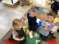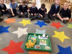 This week the Little Owls have been learning about Easter. We started out by creating a mind map about what the children already knew about Easter. Throughout the week we used books, videos and discussions to add to our knowledge. We read the Easter story and explored common Easter traditions. The children enjoyed playing 'Kim's game' and 'Think, pair, share' to recall what we remembered.