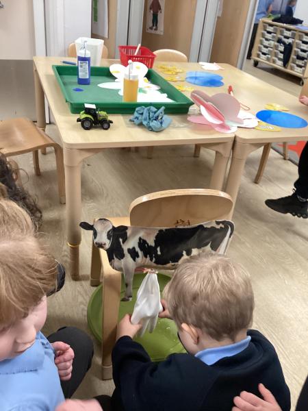 This week the Little Owls have been learning about farms. In our book talk sessions we read 'Rosie's Walk' by Pat Hutchins and 'Farmer Duc'k by Martin Waddell. The children have been focusing on answering 'who', 'what', 'where', 'why' and 'how' questions. We have also been usuing language to describe characters like the kind duck and the lazy farmer. The children explored farms further during provision time and particularly enjoyed strengthening their hand muscles by milking the cow!