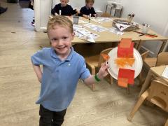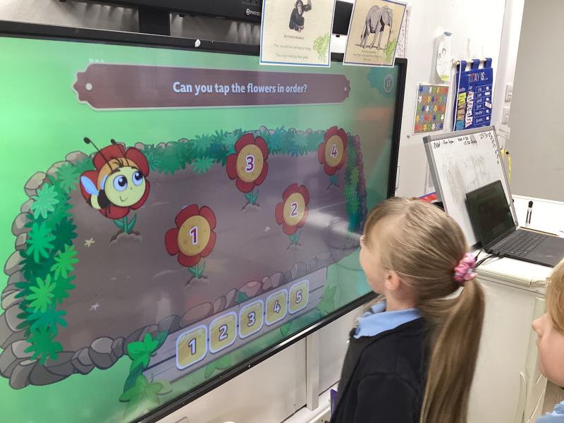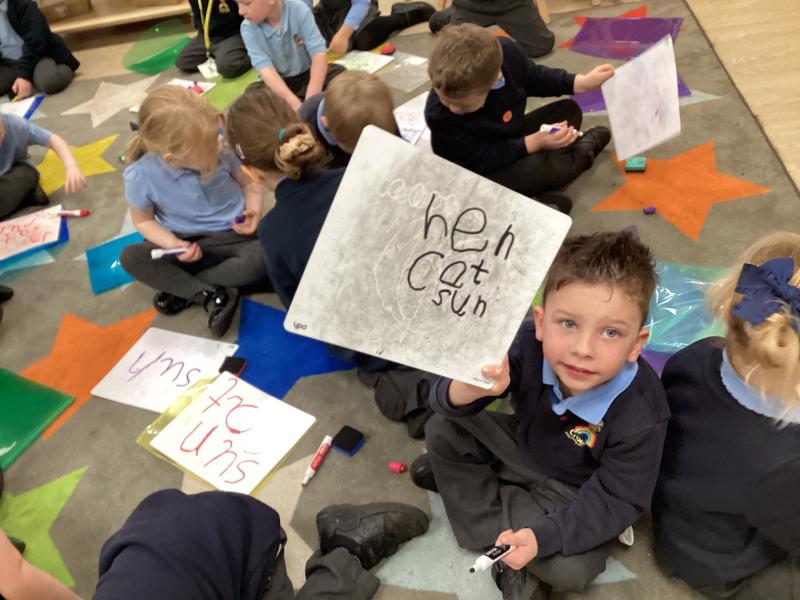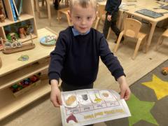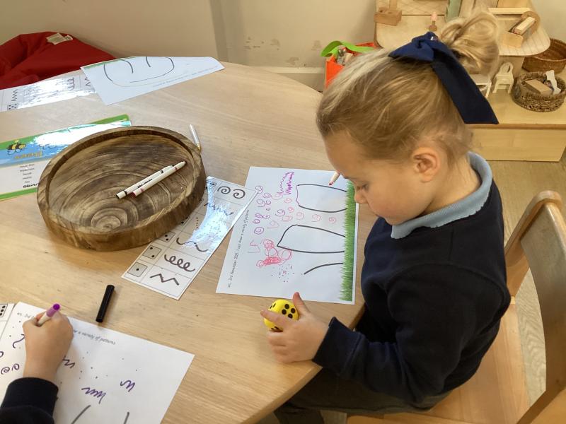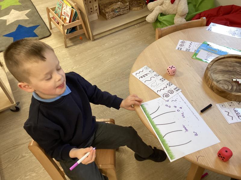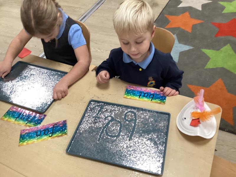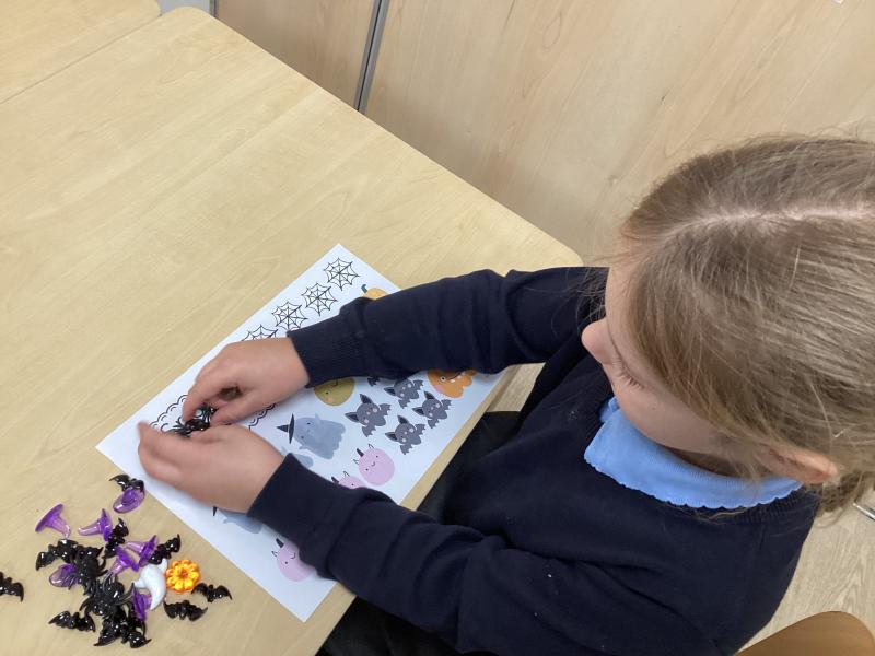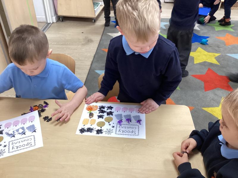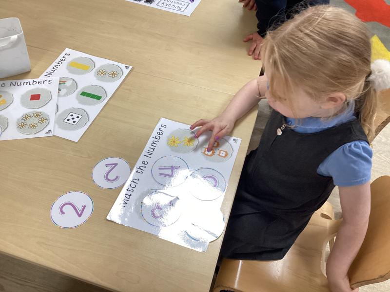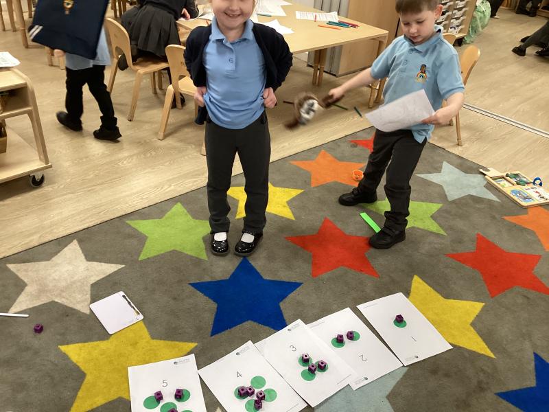 In maths we have been learning to recognise numerals and count out different amounts within 5, remembering the stopping number.