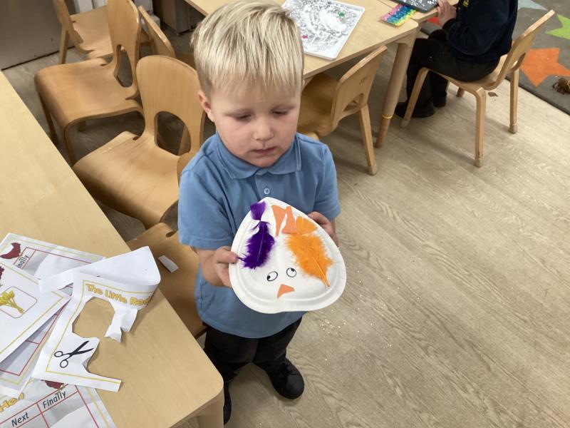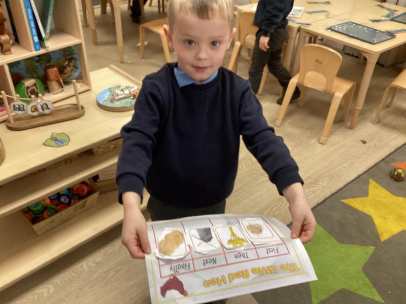This week we have been reading 'The Little Red Hen'. We have been ordering the story and learning to write the name of the characters. We have also be learning about Remembrance Day and the children used the pastels to create their own poppy artwork.