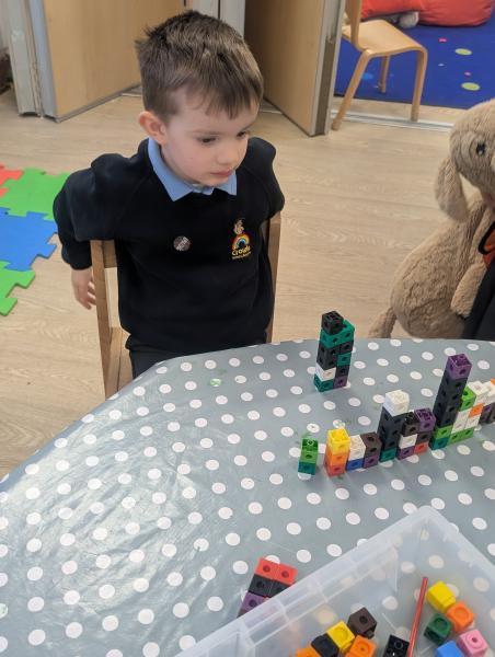 The children have loved making their own number blocks. Some were able to then order them. We have also enjoyed yoga poses in our physical area.