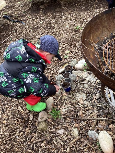 The Little Owls enjoyed a visit to the nature area this week. During our visit the children planted lavender, made nest bundles and left out seeds for the birds. We also practised using gardening tools safely to cut up sticks into smaller pieces. The children had a great time exploring with their friends and family members.
