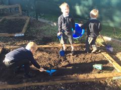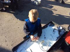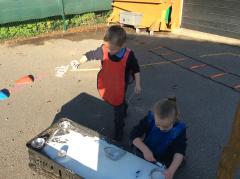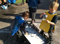 The Little Owls have loved playing and exploring outside this week. We have been developing our fine motor skills by mark making with chalk, scooping sticky gloop and writing letters with water on the garage. We have also practised gross motor skills through digging, safely climbing and moving in different ways.
