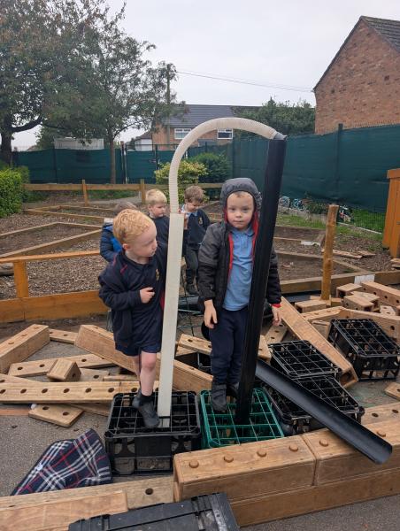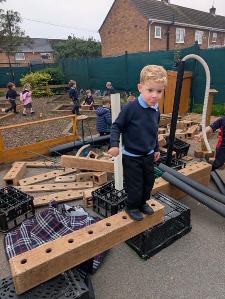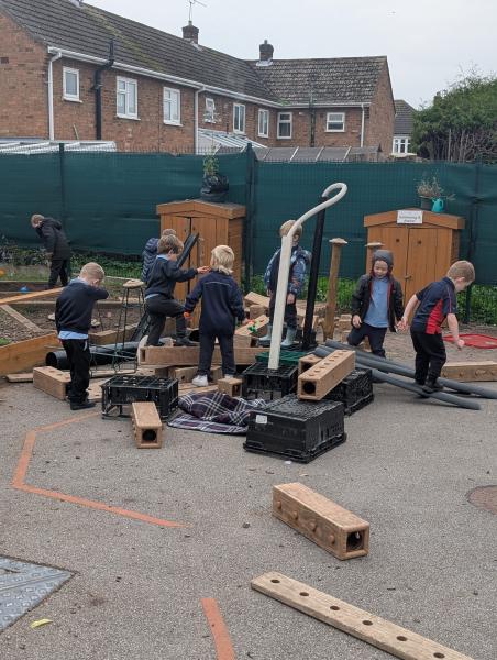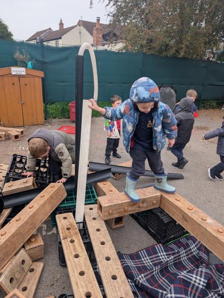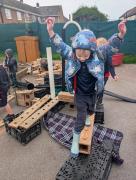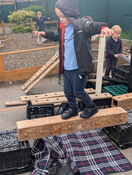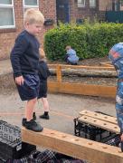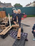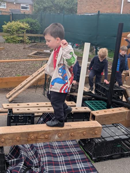 The children have loved our building challenge this week. The creepy castle seems to evolve daily. We now have bridges and moats. Lots of team work was required along with some good balancing skills.