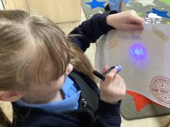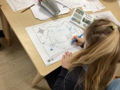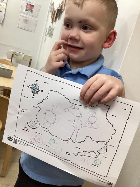The children took it in turns to act out Tom's journey, narrating the different things they spotted along the way. We have also be writing secret messages and drawing maps to show the journey across the Arctic.
