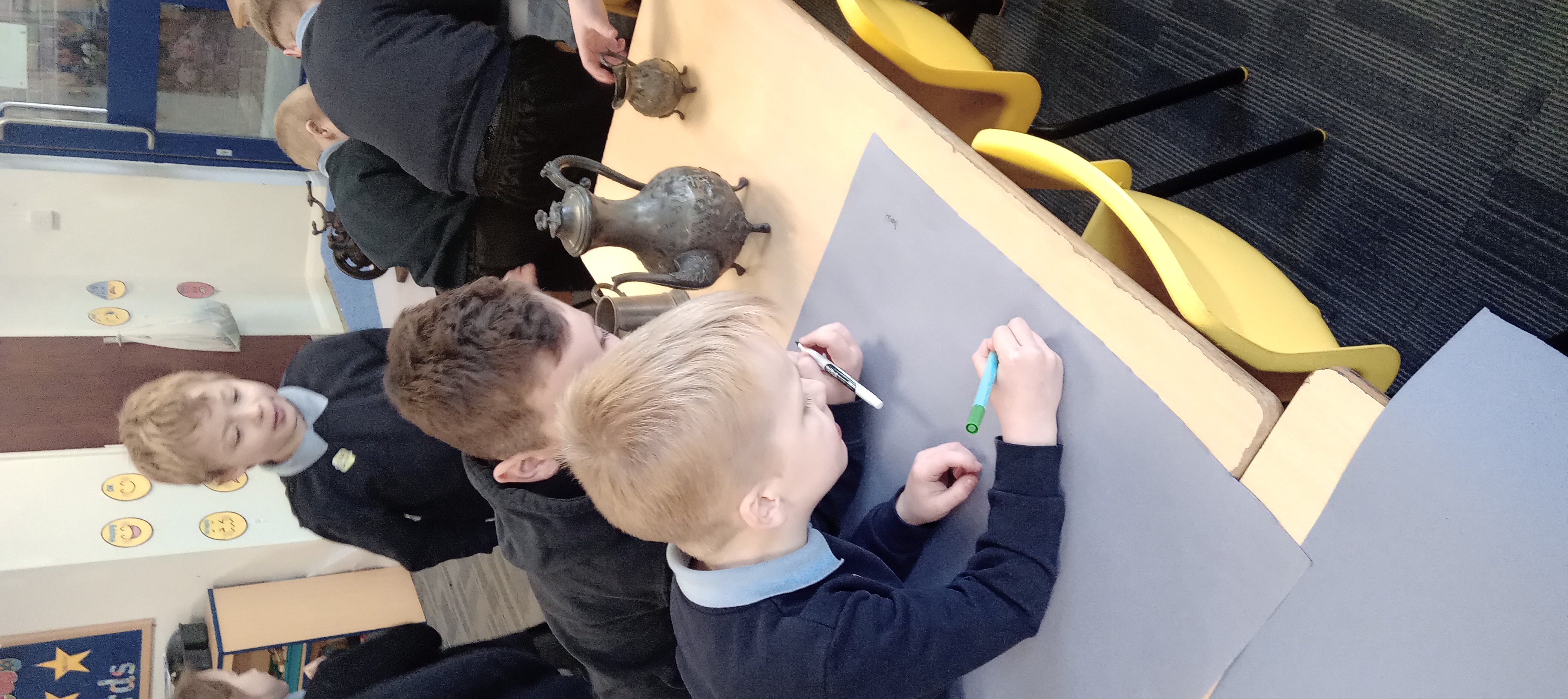 The children enjoyed our writing experience day. They investigated objects that might be found in Grandads loft. They then wrote adjectives to describe them.