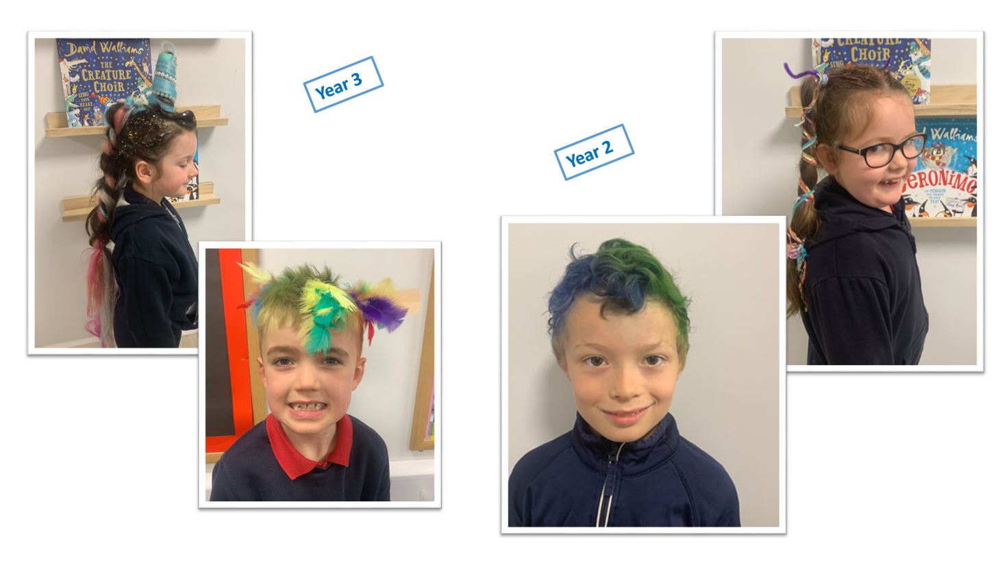 Today is our silly hat/ silly hair day to raise money for our trust charity -The Yorkshire Air Ambulance. These are some outstanding examples of the fun we have had. Well done to our overall winner who wins a children's hair cut at Quintessential Hair, Crowle.